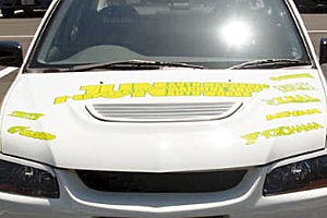 アイラインは機能パーツではありませんが、ヘッドライト上部を覆うことにより、ランサーエボリューションの隠し持つ闘争本能や精悍さを表現できるアイテムです。愛車の個性を演出したい方にお薦めです。