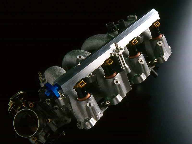 パワーを上げれば当然必要となる燃料の量も増えます。そこでフェールライン流動の抵抗を削減したデリバリーパイプを製作しました。またメインインジェクターの容量を上げた仕様に対応できる大容量インジェクター用も設定してあります。