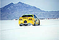 1マイル過ぎで3速9000rpmを越える。車体挙動はひっぱているせいか、更にタイヤが滑ってコントロールが利かない。9500rpmまで何とかひっぱり4速へシフトUPした瞬間、ブーストの立ち上がりでリヤタイヤコントロール不能、スピンアウトしてしまう。スピン時、時速約340km/h。回転したときトランクが開いたため浮き上がらずにすんだものの、トランクが開かなかったら、そのまま宙へ飛んでしまったか???。まさに不幸中の幸いとなった。しかし1マイルで200MPHは越えていただけに非常に悔しい。
