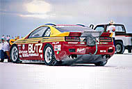 This is the car developed for the 1991 U.S.A. Bonneville Speed Trial. With the ultimate VG30DETT on board, we achieved a wonderous speed of over 400 km/h. In the E/BMS class, we shined with a record 419.84 km/h, becoming world champions, and making a global name for ourselves. This record remains unbroken.