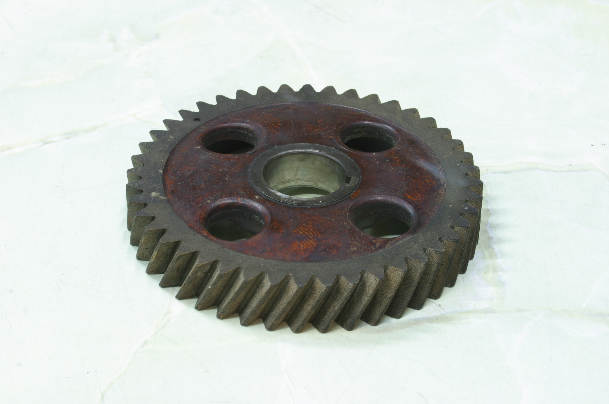 こぅ見ると普通のプーリーです。ギアです。でもこのプーリー、古い物なんですよ。