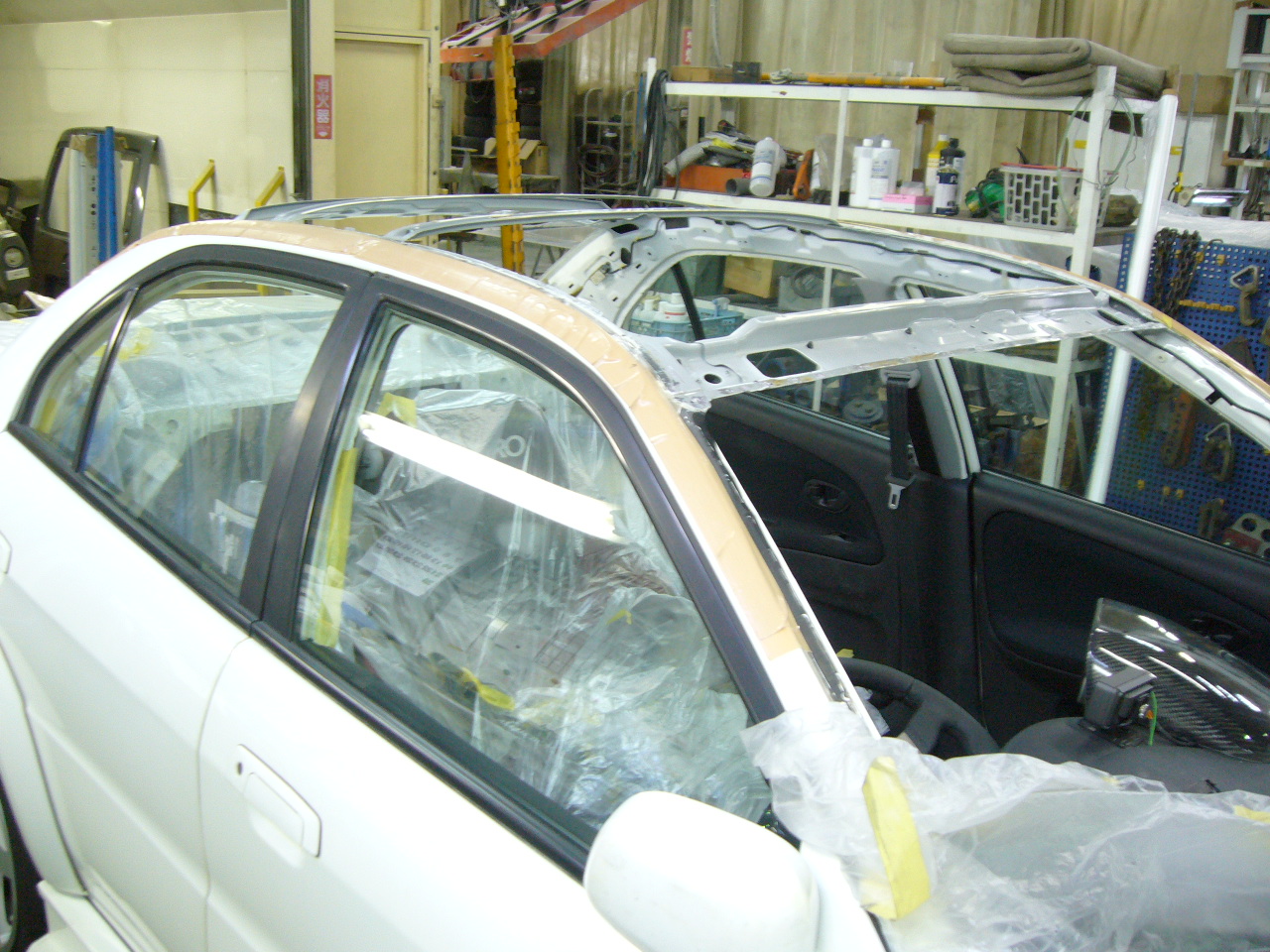今回はカーボンパネルに変更し軽量化といった作業です。ルーフパネルは別に塗装しましたが、リベットとパネルボンドにて接合する予定です。