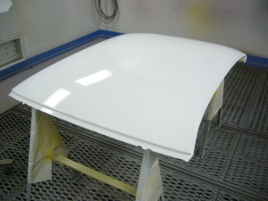 塗装した屋根(ルーフパネル)です。鉄板よりだいぶ軽くなり、軽量化と低重心化が可能となります。