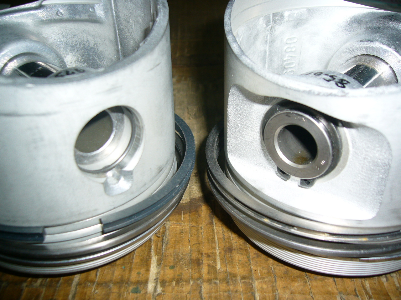 右がピストンピンにスナップリングがはまるタイプ。