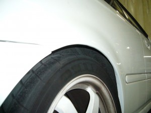干渉解決には、フェンダーツメ折り、たたき出し、ブリスターフェンダー化などあります。