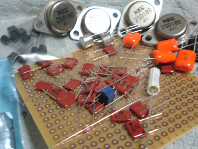 実は事前にラインアンプ兼ヘッドホンアンプとしてNo210のフラットアンプ部を組んでみたのですが、調整中の現状でさえメインと互角に渡りあっています。これはパワーアンプも組んで味見せねばと思い部品をかき集めてみました。といっても以前からの在庫品も結構あったり(^^;