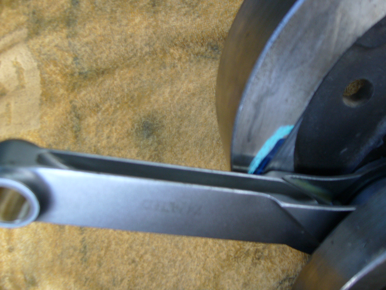 ハーレーのクランクなのですが、社外コンロッド等でフライホイールと干渉してしまい、まず摺れるというレベルではない物があります。削るしかないのですが、こんな感じのものもあるよ・・・という例です。