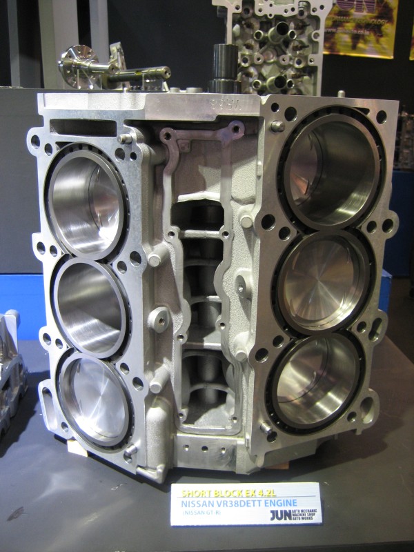 東京オートサロンで弊社のブースで展示してあった、R35GT-RのVR38DETTの「4.2Lキット」ですが、メインとなる部品は完成しています。更にはそれを受け止めるブロックもご覧になった様に完成しています。