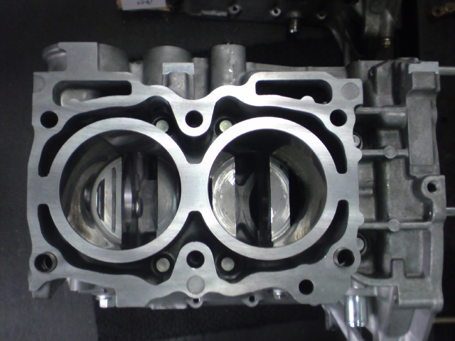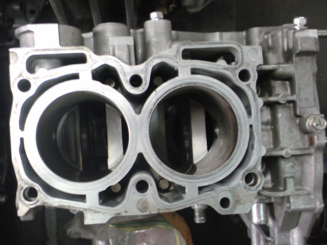 これだけEJ25 (SG9ではないはず)上の2L系と比べるとスリーブ部の肉厚が異なるのが分かります。SG9はGD系と同様のリブが画像上下に入ります。