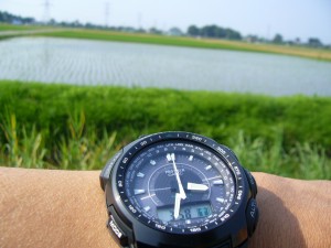 秒針がさす方向が北なので、後ろ側に進めば、南へ・・・