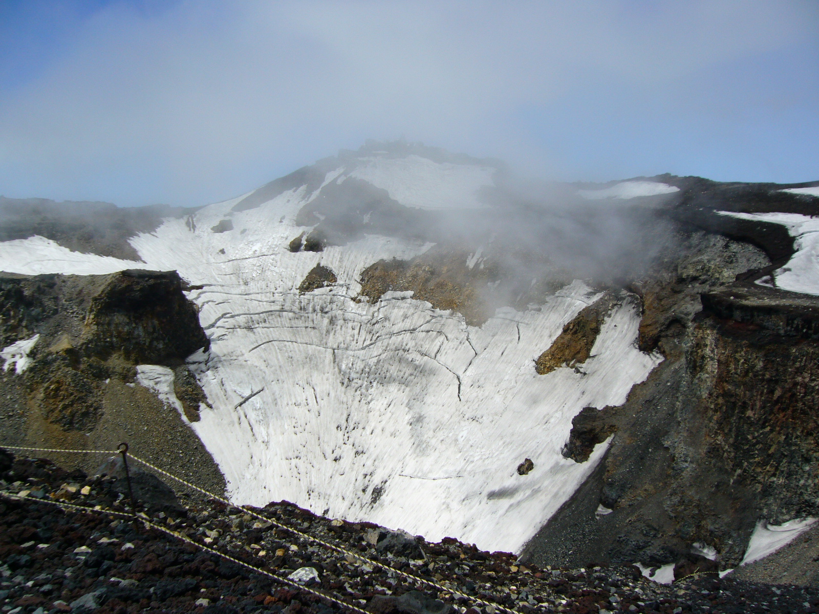 加工、いや火口です。 (あそこが剣が峰3776m)