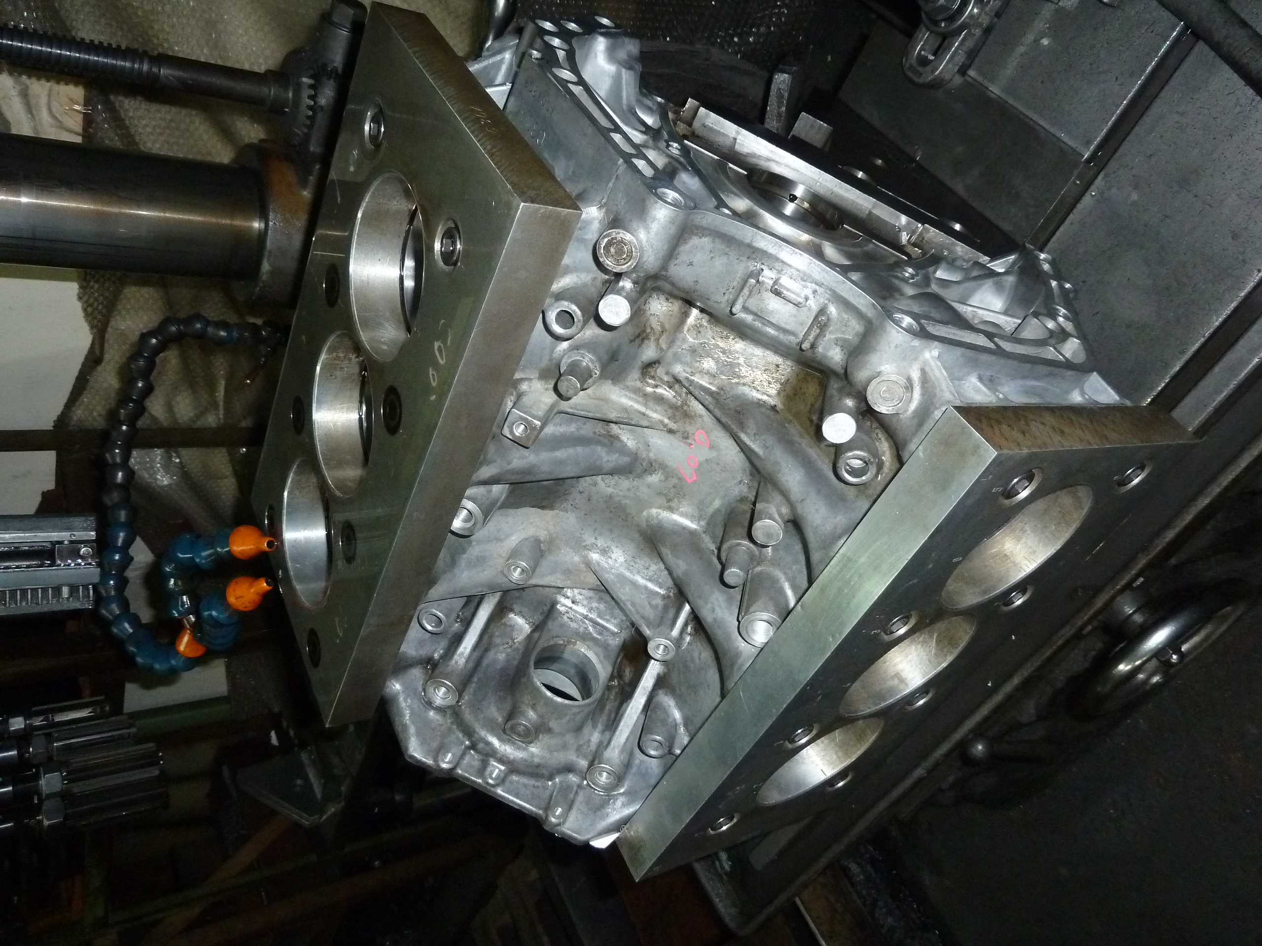 ホーニングマシンにセットしたところ。同時にできないので片バンクからおこないます。