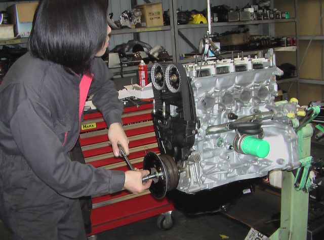 さて、今日も何の気無しに工場の様子を伺っていると、メカニックのOくんがB16Bの組立中。