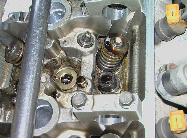 バルブはリフトしないように固定して、スプリングだけを縮めなくてはなりません。