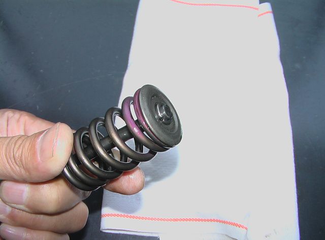 こうしておけばバルブスプリングを外した後もバルブが燃焼室内に落っこちてしまったりしないのです。
