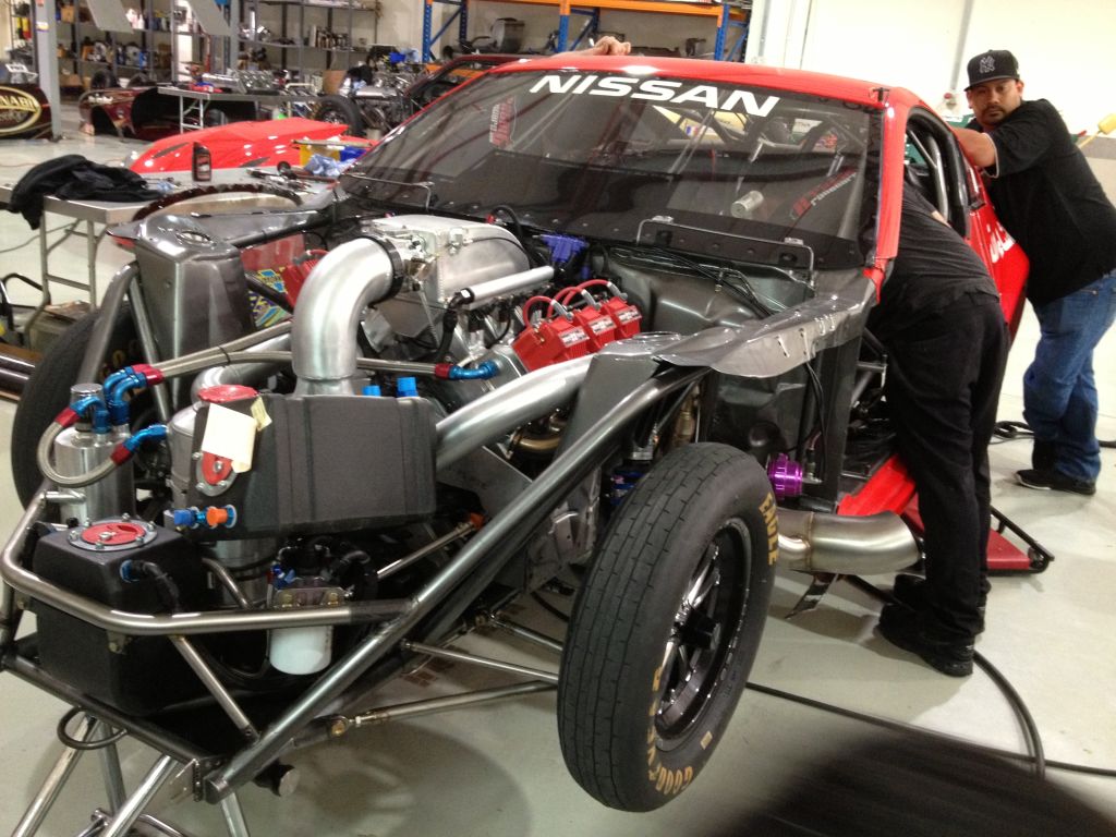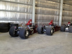 その間にガレージ見学させてもらいました。建屋が何棟も有りドラッグマシンが置いてあります。