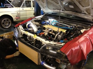 だいぶ形になってきました。インタークーラーを大きな物に変更したため、配管レイアウトに工夫を凝らしています^^。