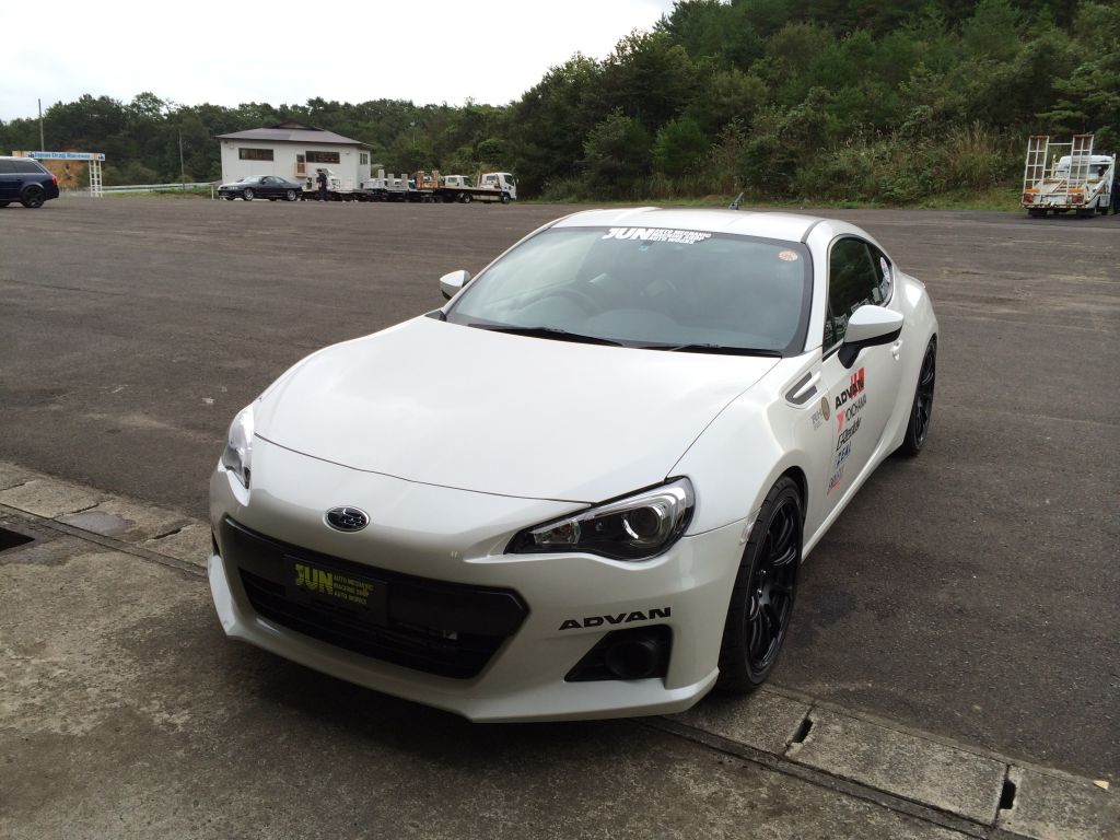 RH9の加盟店は元々ゼロヨン得意なショップ様ばかりで、R35や、RBのGTRシリーズが9秒や10秒台をポンポン出している中、当社で持って行ったのは、デモカーBRZ。 トラストのT518Zターボキットを取り付けただけの、262ps仕様です。