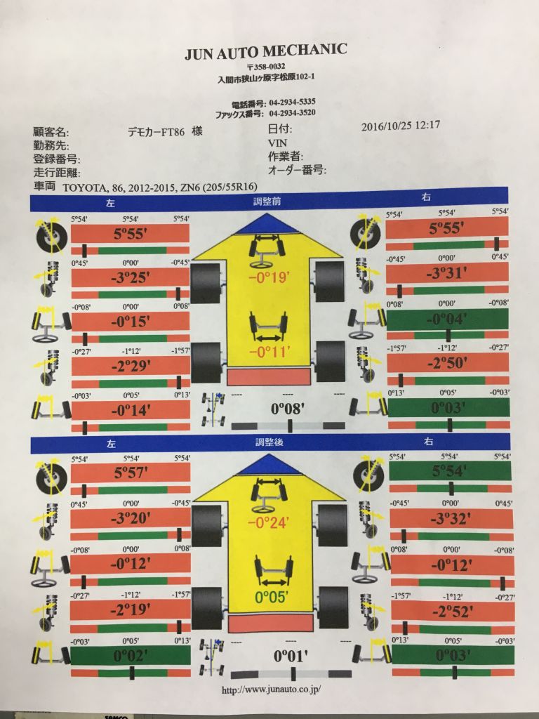 テスターの搬入とレクチャーでデモカーのFT86を測定して見ました。