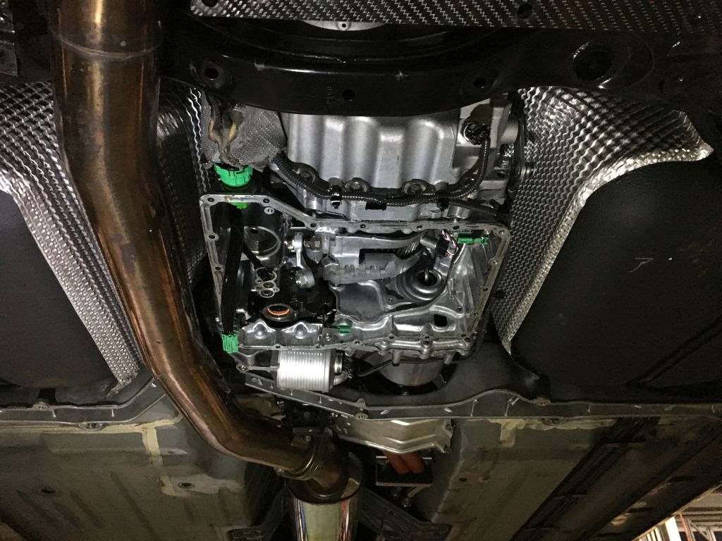 その後、すべて組み立てて、オイルを補充して、エンジン掛けてミッションの油温が50℃になるのを待ちます。そしてオイルレベル調整します。そして油温が70℃超えるまで待ってギヤとクラッチ学習します。全部出来てオイル漏れなど点検して、問題なければ、アンダーパネル組み付けです(^。^)。
