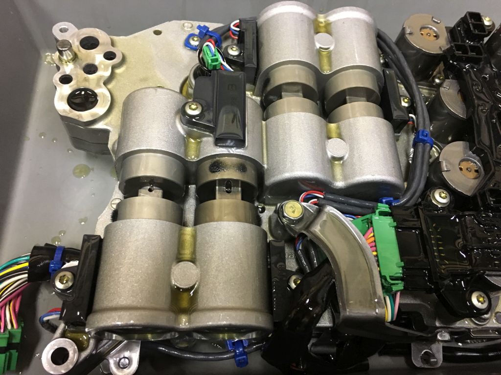 バルブにポジションセンサー用の磁石が付いているので、それが鉄粉を呼んでしまいます。鉄粉がバルブボディとの間に入り込むと削れてしまうので、酷いと油圧が逃げてシフト出来なくなるそうです。そこまで酷いのはまだ見たことありませんが、そうなるとミッション交換でしょうね。(~_~;)。予防の意味も含めてせっせと掃除します。