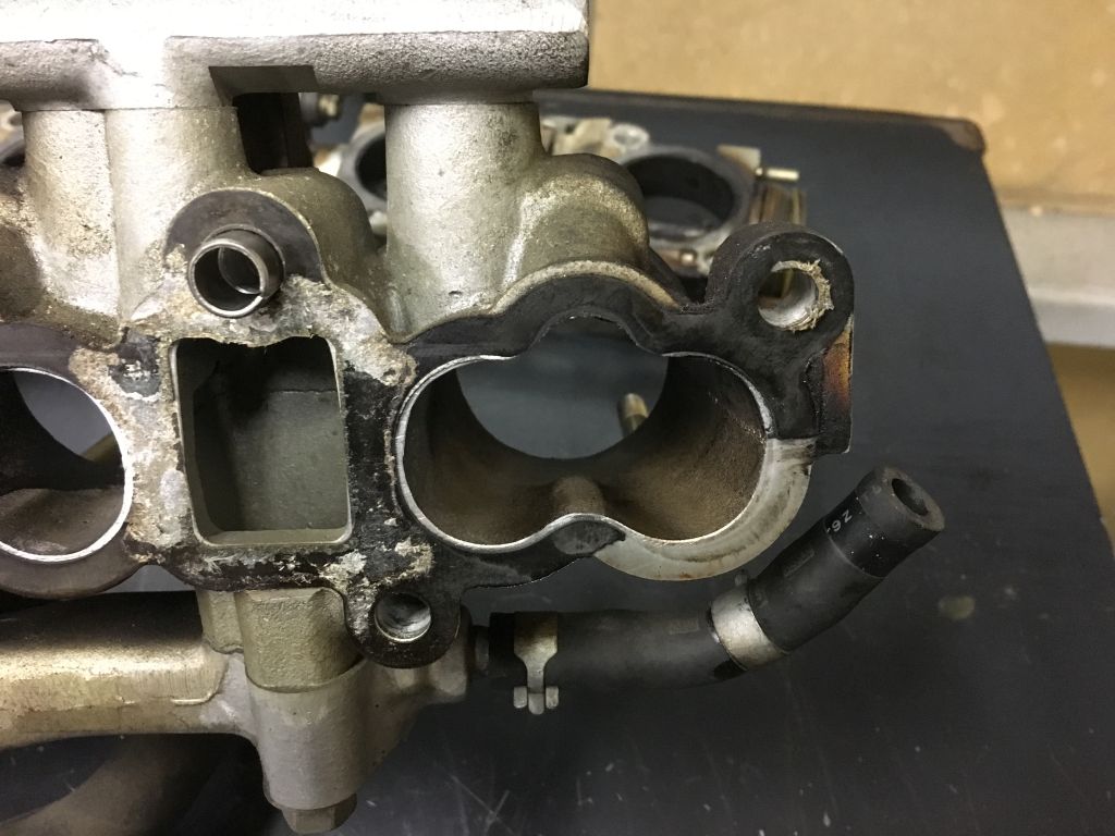 と言うことで、ヘッドも降ろすしHKSのメタルガスケットキットにインマニやスロットルガスケットも入っているので、追加料金無しで直ります。(^。^)。インマニのガスケット切れですね。