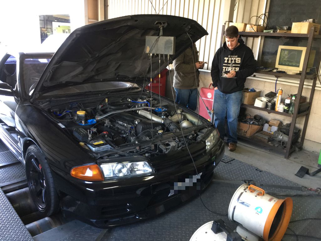 先日BNR32でヘッドガスケット交換中と紹介しましたお車ですが、あちこち追加作業でようやくセッティングに漕ぎ着けました。(~_~;)。