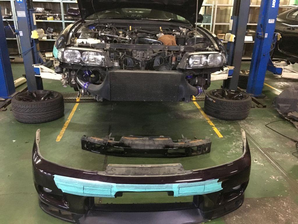 まだ真っ黒ですが、黄色く塗って、グラフィックを貼ります。ワークスは現在大忙しになっています。Fリップや、Fグリルなどはオリジナル品を新しく作っています(^。^)。