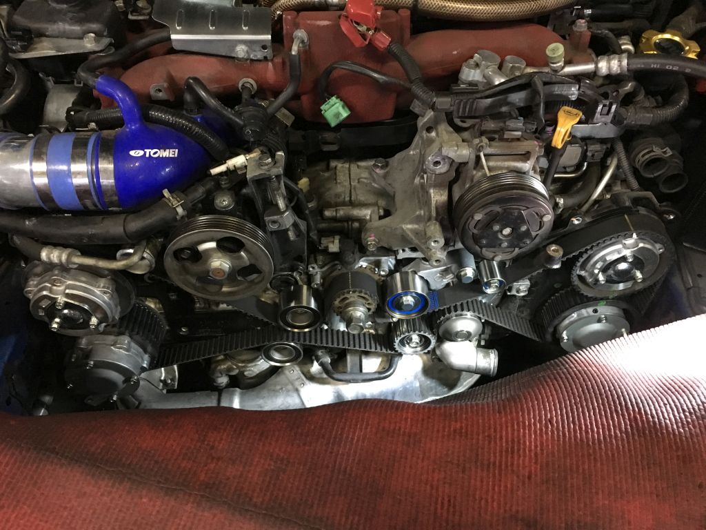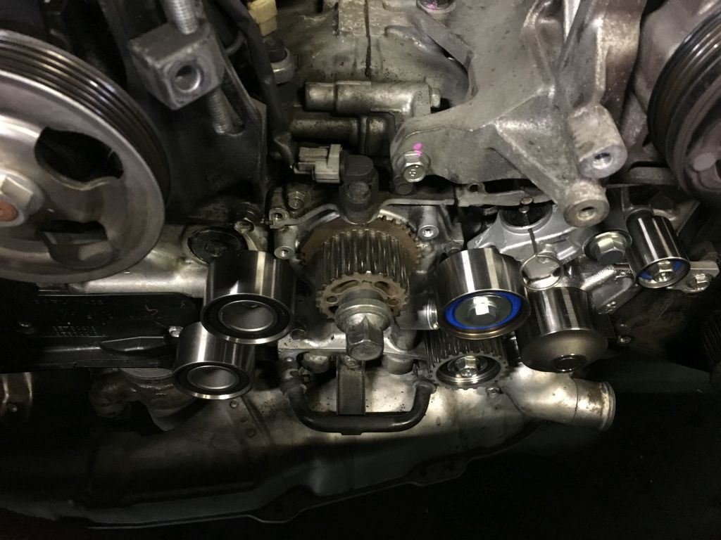 実は、スバルでウォーターポンプのリコールが有ったらしいのですが、その時にウォーターポンプ交換して、タイミングベルトは交換して無いらしいのです(^_^;)。走行92,000kmなんだから、追加料金でベルトとテンショナーベアリング代は実費でもタイミングベルト交換してくれればいいのに(^_^;)。
