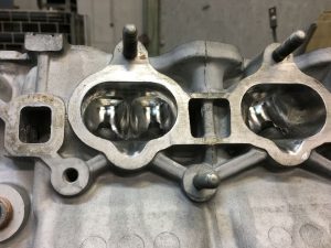 その後、ヘッドの加工に出す前にポート研磨をシコシコと。ガイドは削っていないです。ロッカーアーム式なので、バルブステムが横にこじられますしね。ガイドもリン青銅にするので、耐久性重視です。