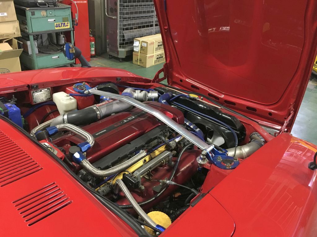 一見Fスポイラーがついている程度ですが、RB26に換装してあります。