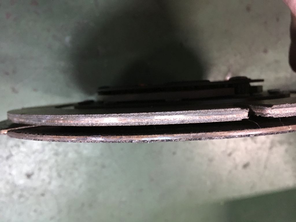 上がオーバーホールキットの新品、下が使っていたディスクです。辛うじて摩材が残っている感じです(^_^;)。