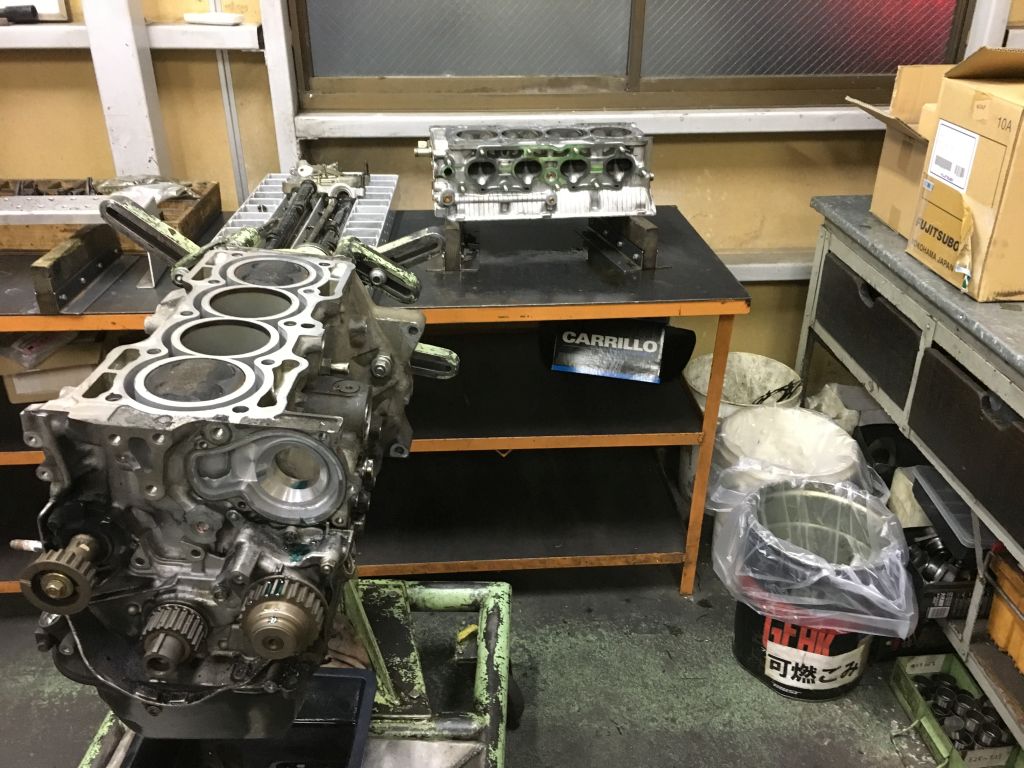 V6エンジン2台オーバーホール、4気筒エンジン2台オーバーホール、後は今日御入庫されたER34のLSD組み付けなどやっております。