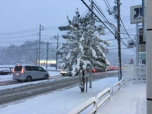 大雪です。当社の前の道路。