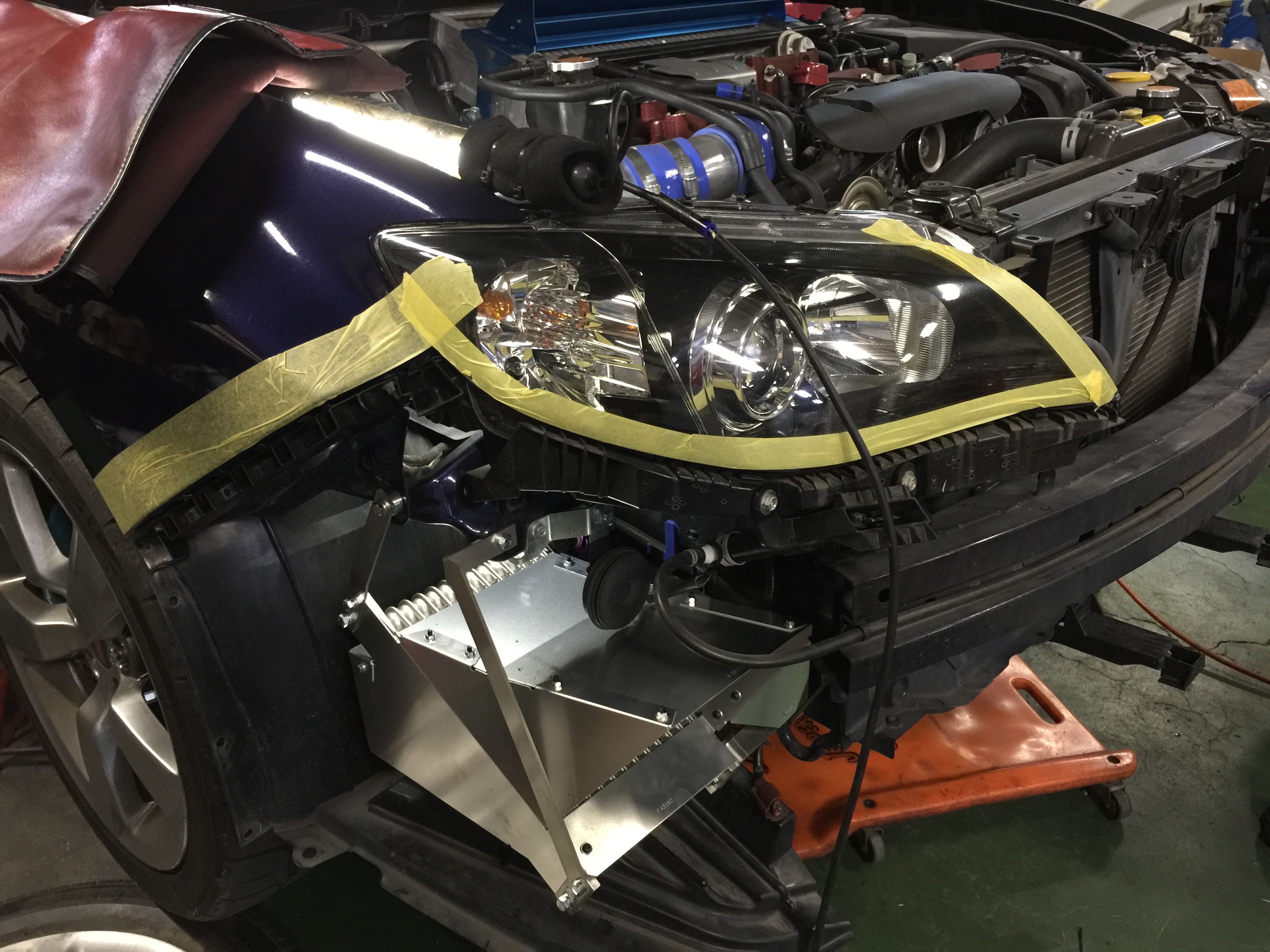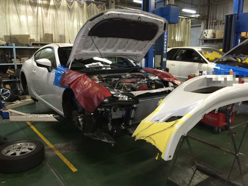 そして、BRZにT518ターボキット取り付け^^。当社デモカーと同じ仕様にします^^。こちらの車両はBLITZのFバンパーなので結構いかついですね^^。