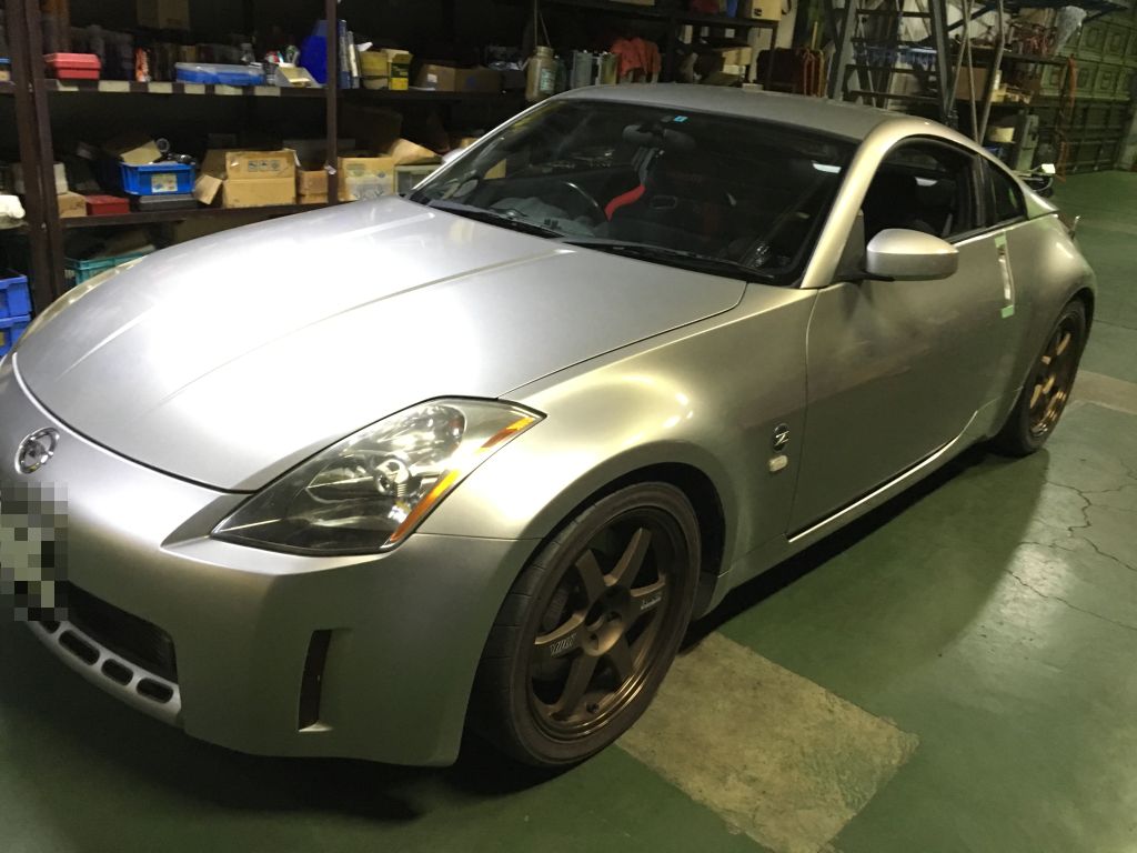 そして車検でお預かりしていたZ33です。ヘッドライトは曇ってしまっていたので磨いて光量確保、無事に車検合格しました。