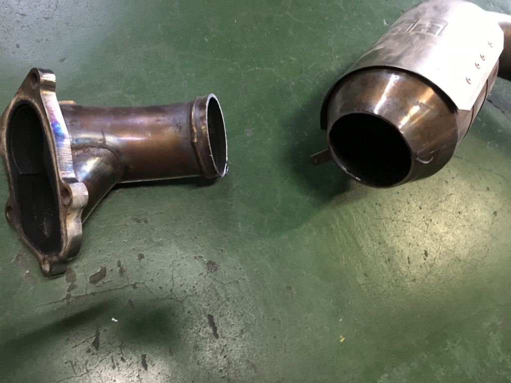 インタークーラーなど交換したということで、リセッティングを依頼されていたGRFのお客様が、走行中に急に爆音になったと、レッカーで御入庫になりました。エキマニパックリ割れていました。