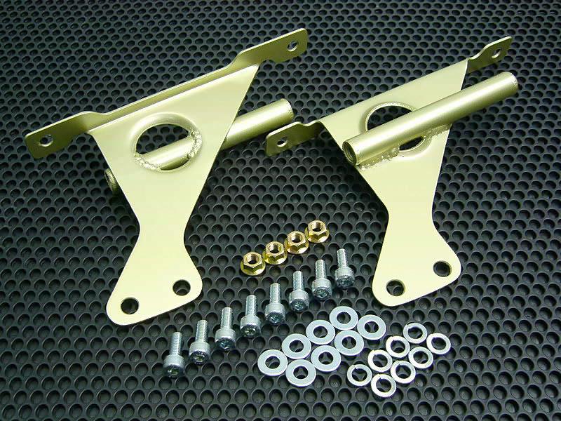 ブレース単体で前後のブラケットに一体感を持たせ剛性をあげ、クイックなハンドリングとブレーキの安定性を向上させ、コントロール領域をさらにアップさせます。同時にブラケット自体の溶接増し補強やガセット補強をすればより効果はあがります。