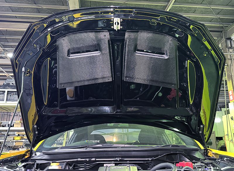 - We welcome orders for clear coating of carbon fiber hood (JP¥66,000(w/tax)). Please contact us for more details.
